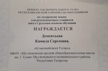 9 нчы сыйныф укучысы Дементьева Камила Республика мәктәп укучылары олимпиадасының йомгаклау этабында катнашып призер булды. Укытучысы Мәүлиева Г.Ф.. Уңышларыгыз белән. Котлыйбыз!!!