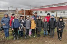 На каникулах наши ученики побывали на экскурсии в конно - спортивной школе "Аргамак". Школьники познакомились с различными породами лошадей, условиями их содержания, угостили лошадей яблоками.