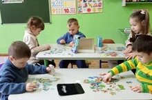 Дети в свободное время любят собирать пазлы.Старшие помогают младшим.