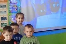 Дети смотрели свой любимый мультфильм.Они пересказали о героях мультфильма ,познакомились с новыми словами.