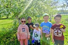 Балалар йорт хайваннары белән танышуны дәвам итәләр.