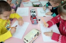 Балалар белән транспорт төрләре турында табышмаклар эйтелде.Балалар дөрес итеп җаваплар бирделәр.Соңыннан рәсемнәр ясалды.