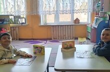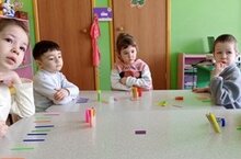 Балалар таякчыклар ярдәмендә санарга өйрәнәләр, биремнәрне эшлиләр.
