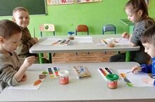Дети на занятиях рисования учатся рисовать и красить.