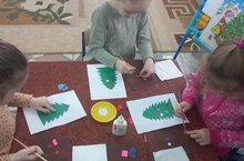 Уртанчылар төркемендә кисеп ябыштыру шөгылендә чыршыны бизәдек.Балалар кайчыны дөрес тотарга,квадратның почмакларын кисеп түгәрәк ясарга өйрәнүне дәвам иттеләр.