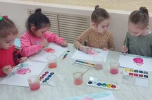 Уртанчылар төркемендә рәсем шөгыле.Балалар түгәрәк формадан торган предметлар ясарга,кәгазь битенең уртасына урнаштырырга өйрәнуне дәвам иттеләр.