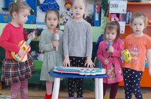 Балалар белән музыка уен кораллары белән танышттык,музыка астында хәрәкәт иттек,җырлар тыңладык һәм башкарырга өйрәндек.