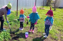 Күмәк эшләү күнекмәләрен ныгыту,чисталыкны күрә белергә өйрәтү максатыннан балалар белән участокны җыештырдык.