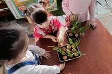 Күчереп утырткан чәчәкләрне балалар белән берлектә тәрбиялибез.