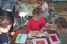 Кечкенәләр төркеме рәсем шөгылендә дүртпочмаклар ясарга өйрәнде,буяу ысулын кабатлады,төсләрне белүләрен ныгытты.Уртанчы төркем"Яшел үләндә кәҗәләр" темасына рәсем ясады,хайваннарның гәүдәсе овал рәвештә булуын ныгытты.Сегодня младшие дети учились рисовать прямоугольник и правильно закрашивать .Старшие учились рисовать козочку на лужайке.