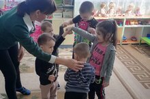 Балаларның хәрәкәт активлыгын төрле юнәлештә үстереп,кечкенә кыршаулар белән төрле күнегүләр, төз атарга өйрәнүне дәвам иттек.При метании в цель ребенок сосредоточивает свое внимание на пападании в указанный предмет.