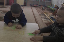 Кечкенәләр белән геометрик фигураларны танып белүне дәвам итеп,таякчыклар ярдәмендә җыйдык.Игровая образовательная деятельность по ФЭМП "Выкладывание геометрических фигур из счетных палочек".