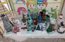 В рамках смотра-конкурса в ДОУ организована выставка поделок "Елочка-зеленая иголочка". В холле ДОУ представлено более 70 елочек, изготовленных детьми совместно с родителями.
