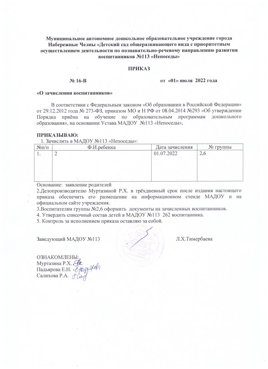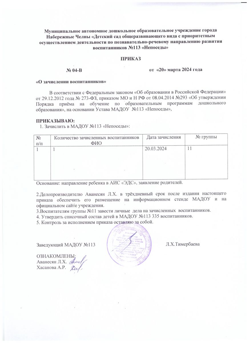 Приказы о списочном составе детей август-сентябрь 2024 г.