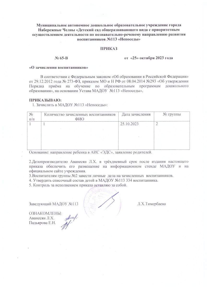 Приказы о списочном составе детей сентябрь, октябрь 2023 г.