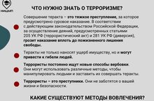 Для повышения осведомленности граждан о ключевых правилах безопасного поведения в случаях террористических угроз специалисты НИЦ Мониторинга и профилактики разработали информационные карточки с пошаговыми алгоритмами и четкими инструкциями о том: