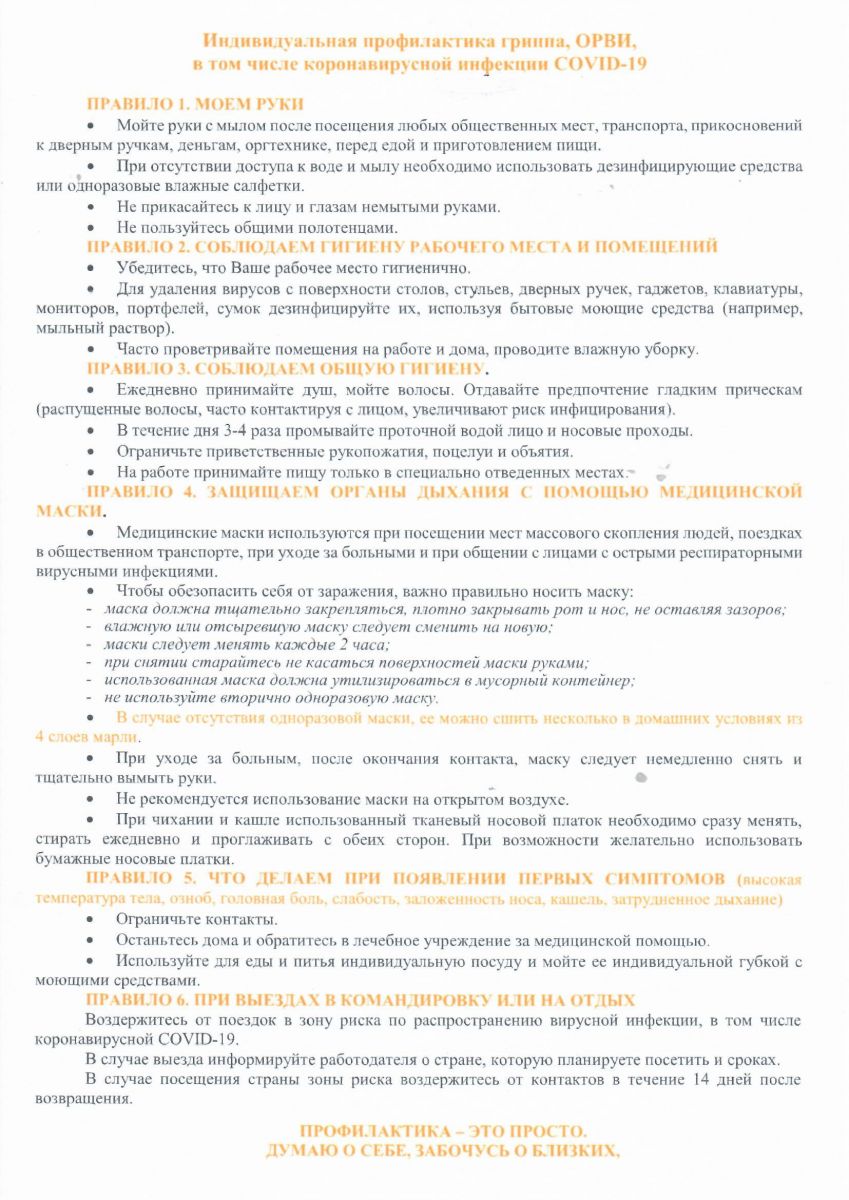 Индивидуальная профилактика гриппа, ОРВИ, в том числе коронавирусной инфекции СOVID-19