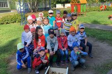В этом году был обновлен огород, воспитателями установленна яркая, красочная композиция. Сегодня она украшает наше Созвездие.