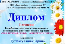 Тухфатуллина Зарина дипломант 1 степени, конкурса "Моя дружная семья"!