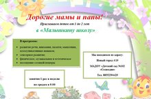 Уважаемые родители! Приглашаем Вас с вашими малышами в "Малышкину школу"