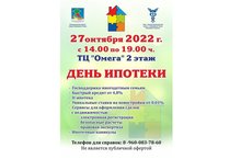 27 октября специалисты профильных организаций проведутбесплатные консультации, в том числе по направлениям:- господдержка многодетных семей;- быстрый кредит от 4,8 %;- IT-ипотека;- ставки на новостройки от 0,01%;- сервисы для оформления сделок с недвижимостью (электроннаярегистрация, безопасные расчеты, правовая экспертиза);- ипотечные каникулы и прочее.Дата и время Ярмарки: 27.10.2022, 14:00 – 19:00Место проведения Ярмарки: г. Набережные Челны, ТЦ «ОМЕГА»(2этаж).