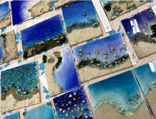 Кроме того, в рамках проекта «Пушкинская карта» педагоги провели мастер-классы, на которых участники узнали секреты создания уникальных украшений и картин из смолы.