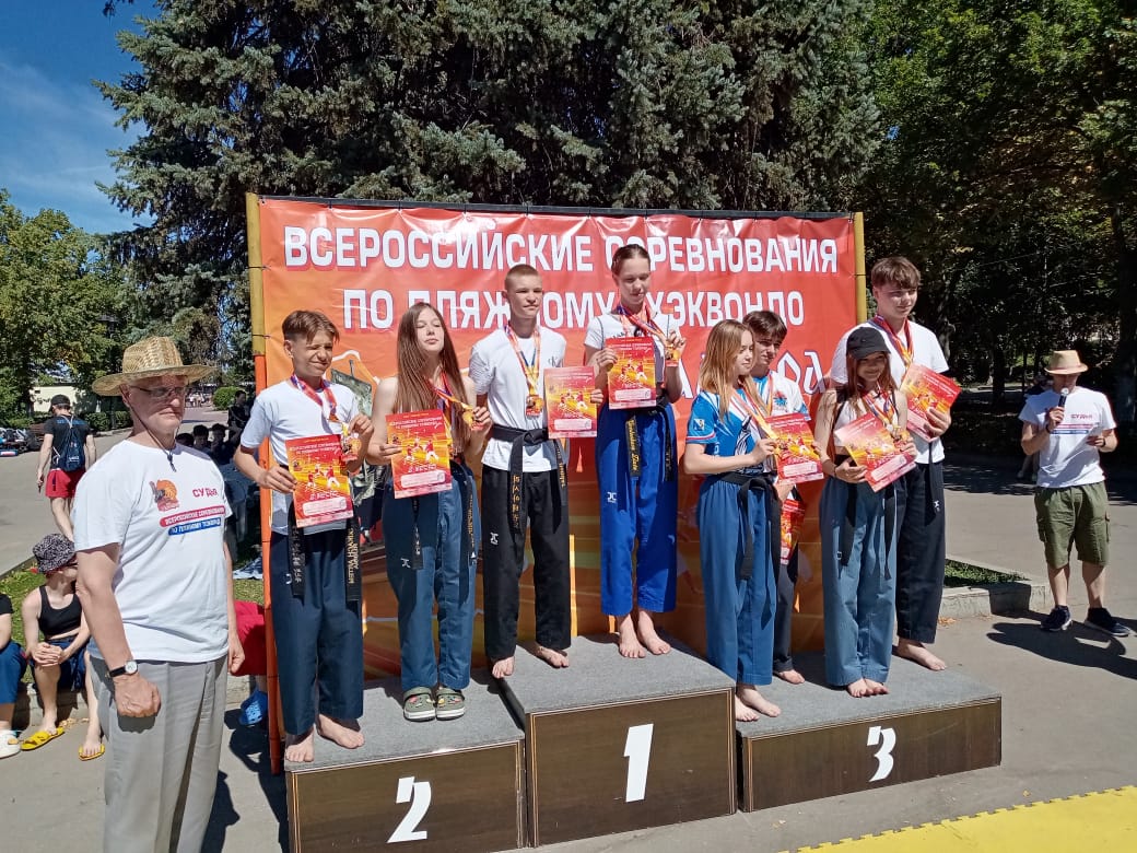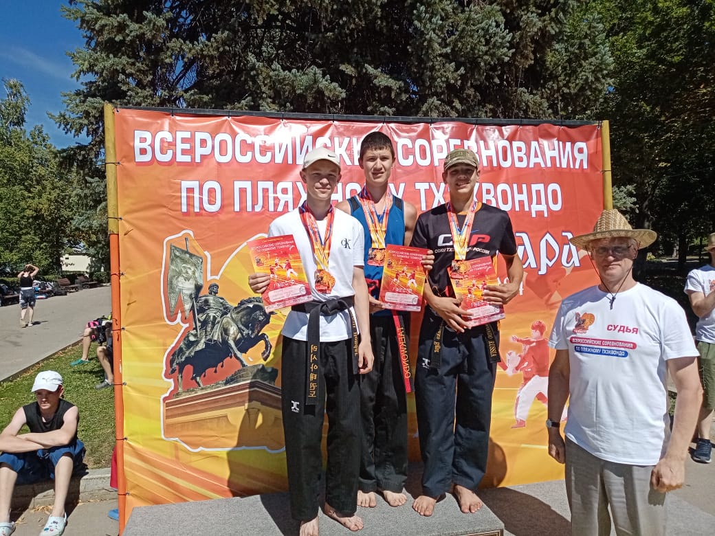 8 июля в Самаре состоялись Всероссийские соревнования по пляжному тхэквондо. Юные спортсмены из объединения «Золотой дракон» под руководством педагога Гнеденкова О.В. приняли активное участие в соревнованиях и стали победителями и призерами.Бондарь Даниил завоевал три золотых медали,Гнеденкова Злата - золотую и бронзовую медали,у Юрченко Егора - золото и серебро,у Нуриева Нияза - золотая и бронзовая награды.Молодцы! Поздравляем!