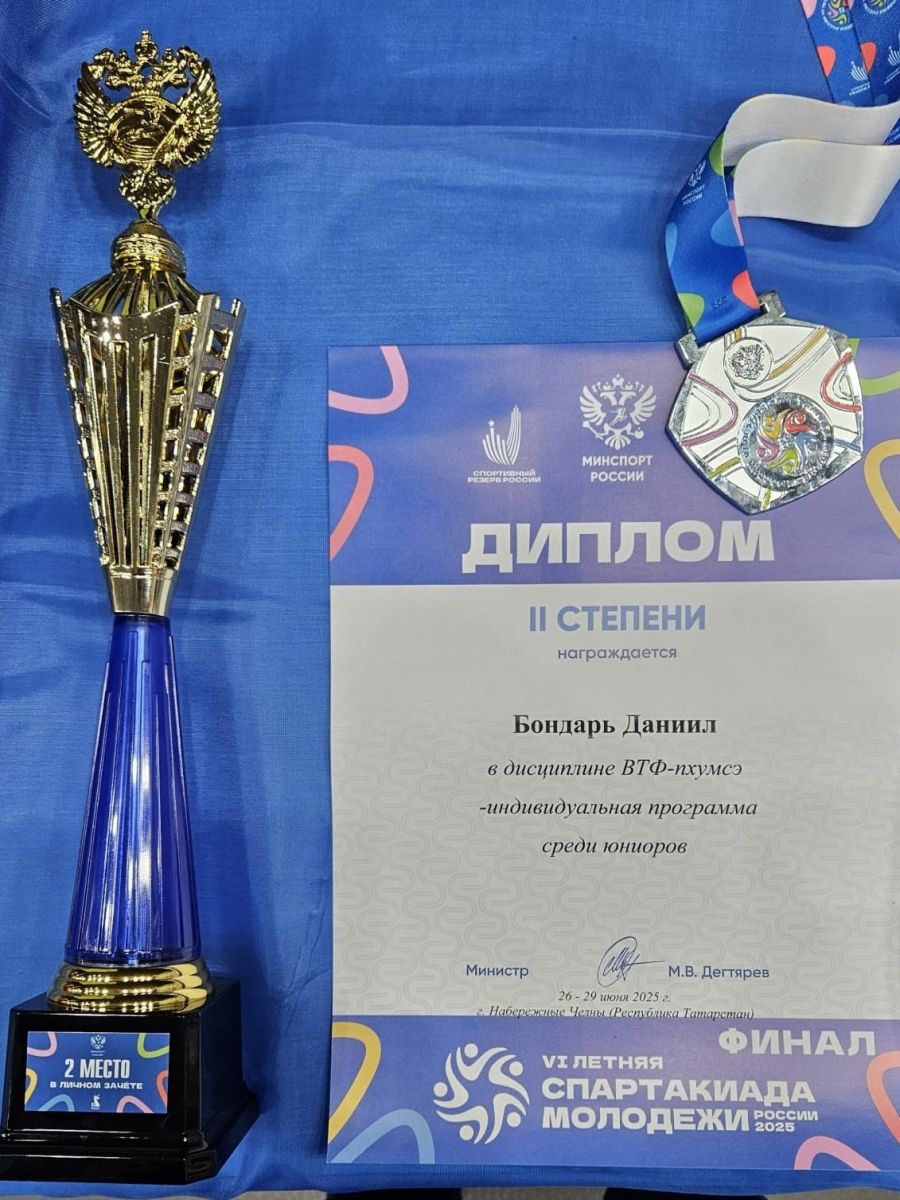 С гордостью сообщаем, что обучающийся нашего Центра Бондарь Даниил занял 2 место в дисциплине ВТФ-пхумсэ – индивидуальная программа среди юниоров. Поздравляем Даниила и его тренера Гнеденкова Олега Владимировича!