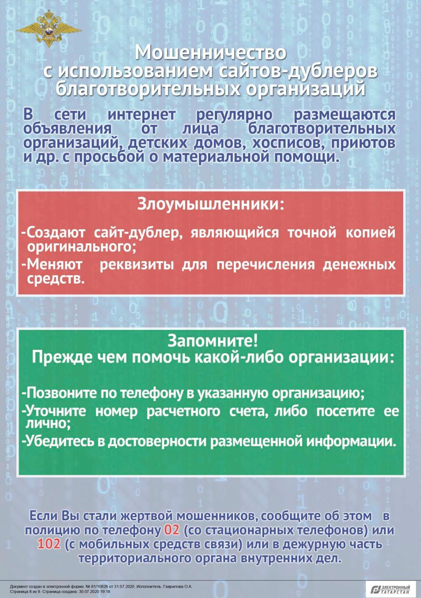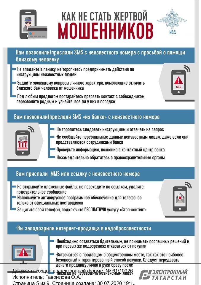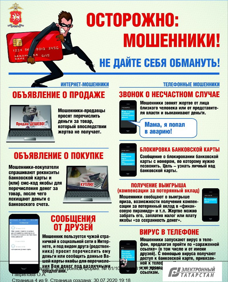 С целью предупреждения совершения преступлений, совершенных дистанционным путем с использованием средств связи и ресурсов сети Интернет, Управление МВД России по городу Набережные Челны напоминает: