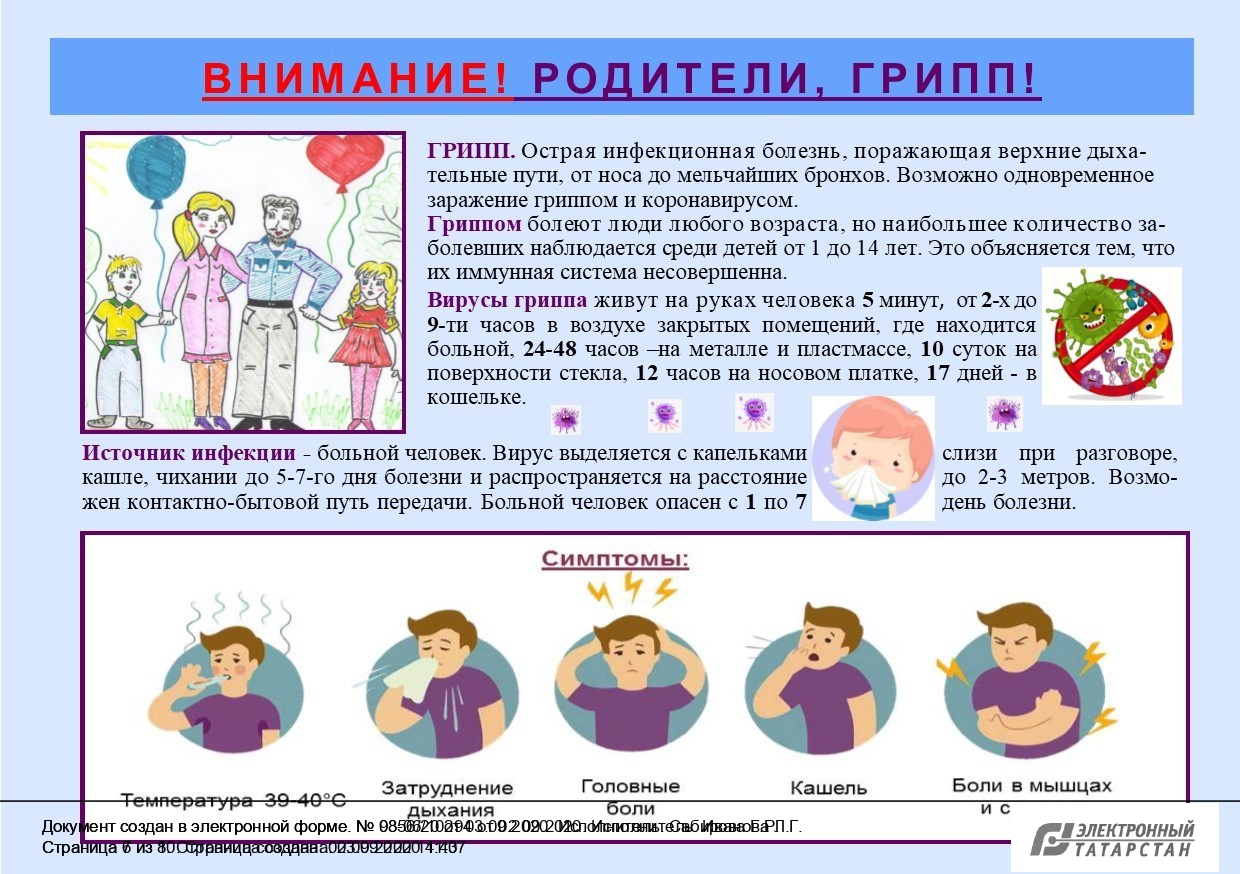 В целях усиления мероприятий по предупреждению заболевания гриппом и острых респираторных вирусных инфекций, в том числе новой коронавирусной инфекции, публикуем памятки о мерах профилактики гриппа, разработанные специалистами ФБУЗ "Центр гигиены и эпидемиологии в РТ":