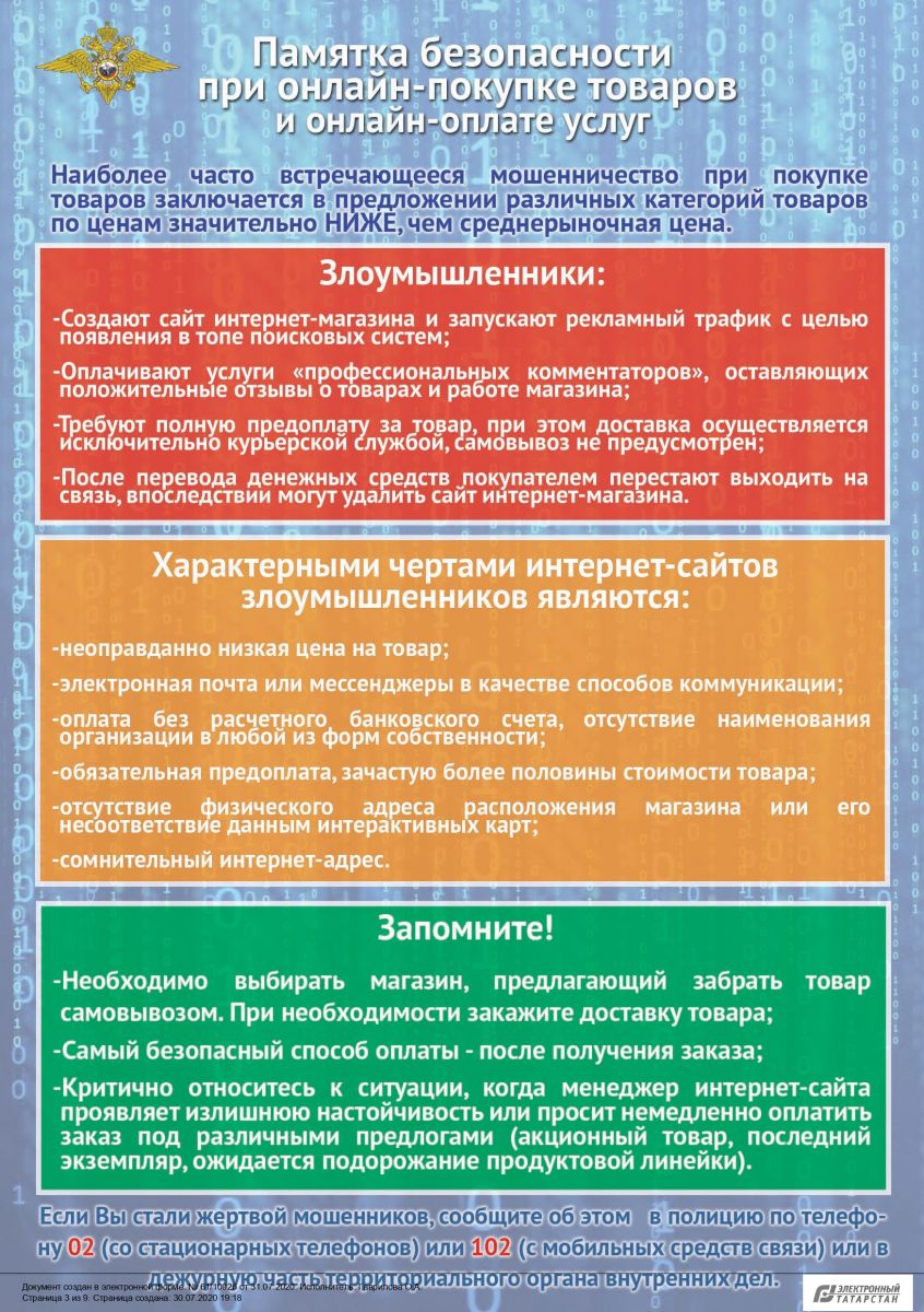 Памятка безопасности при онлайн-покупке товаров и онлайн-оплате услуг