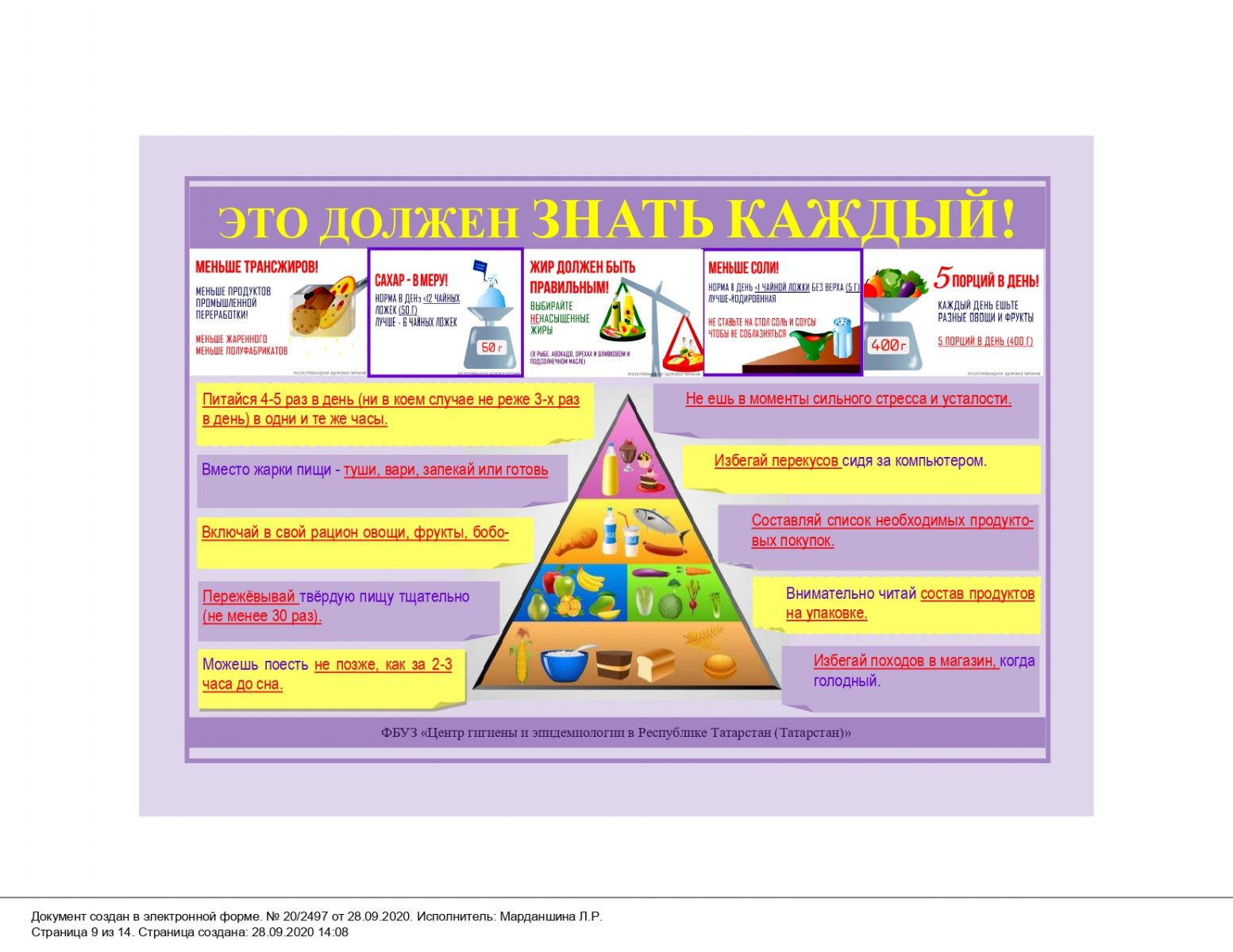 Памятки по впросам здорового питания от Центра гигиены и эпидемиологии в РТ:
