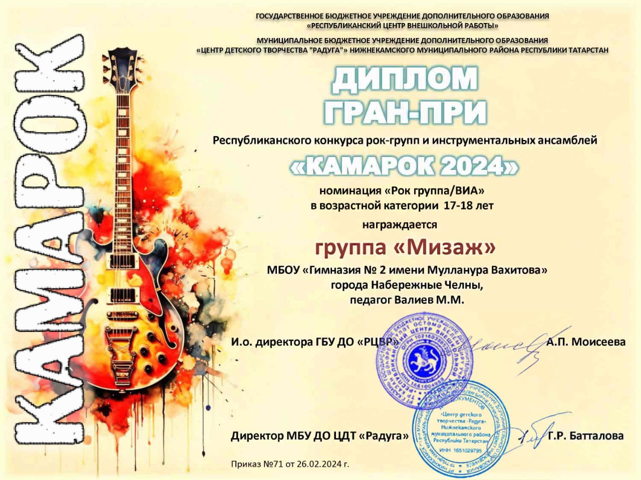 Гимназия укучылары замана белән бергә атлыйлар. Үзе белем алган гимназияне яңа үрләргә күтәрүче Вәлиев Марат Минсабир улы - иң хөрмәтле остаз. Бер карасаң, нәни курайчыларны тезеп уйната, икенче карасаң, югары класс укучылары белән музыка коралларында уйный, өченче караганда, укытучыларга видеосюжет ясый. Бәяләп бетермәслек мәрхәмәтлелек, компетентлылык, тәрбиялелек бөркелеп торган Марат Минсабир улын хезмәттәшләре дә, укучылар да, ата-аналар да хөрмәт итә. Әле уку елы башында гына оешкан яңа төркем инде уңышлы чыгыш ясаган! Ничек моңа сокланмыйсын! «Бер булганнан бар да була!»- ди халык. Гимназия үзе тәрбияләгән укучысы, бүгенге көндә зыялы укытучысы белән чиксез горурлана.