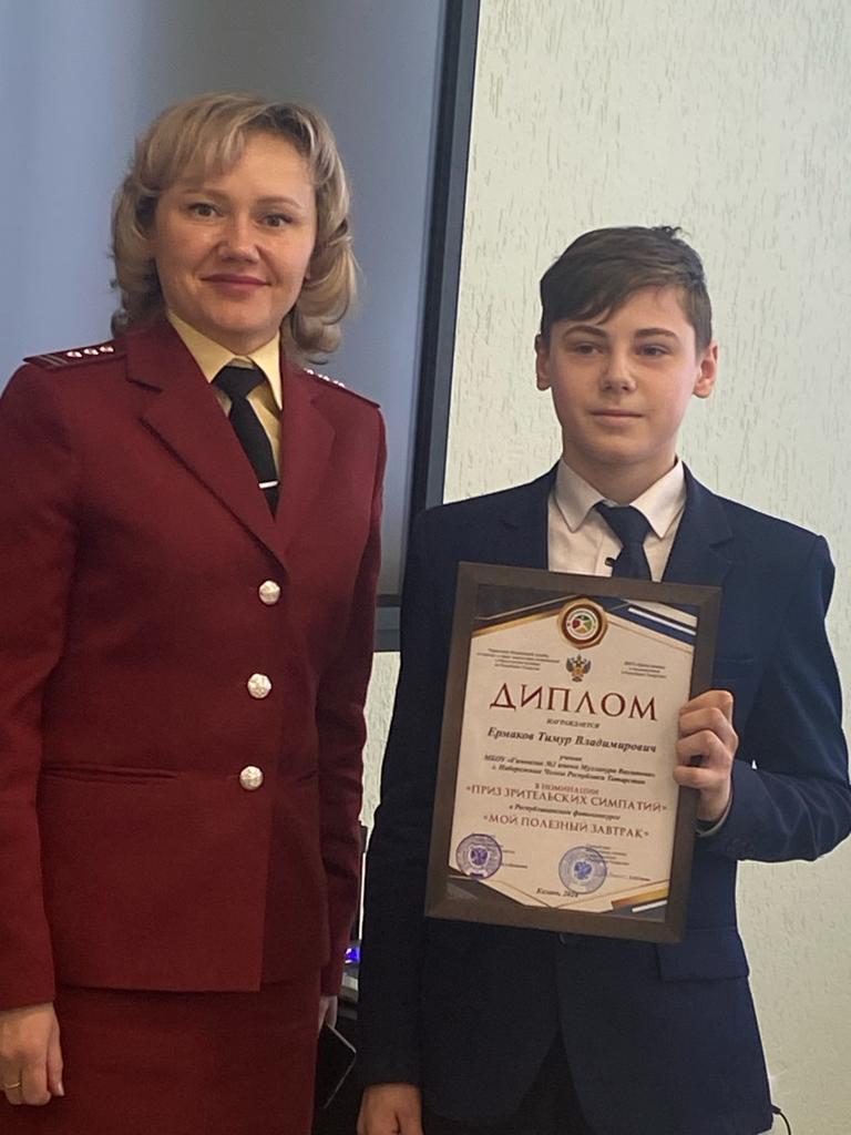 Гимназиянең 6 нчы сыйныф укучысы Ермаков Тимур «Минем файдалы иртәнге ашым» республикакүләм фотоконкурсында « Тамашачылар симпатиясе» номинациясендә җиңүче дип табылды. Тимурны Чаллы шәhәре Роспотребнадзор идарәсе баш белгече Ордина Татьяна Васильевна котлады. Җиңүче хөрмәтенә гимназия сандугачы Адилә Ишалина җыр башкарды. Сыйныфташлары, укытучысы Светлана Старовайтова Тимурның шатлыгын ихлас уртаклаштылар.