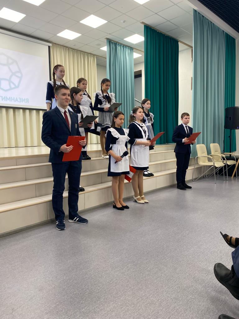 үген шәһәребезнең Советлар Союзы Герое Илдар Маннанов исемендәге 82 нче кадетлар мәктәбендә юнармиялеләр арасында "Ватанның мәгърур уллары" дип аталган хәрбиләрчә атлап җыр башкару буенча шәһәркүләм финал ярышы булып узды. Анда гимназиябезнең 6А сыйныфы укучылары (сыйныф җитәкчесе Старовайтова Светлана Владимировна, юнармия җитәкчесе Мугинов Фаик Фоатович) 2 нче урынга лаек булдылар. Тырышкан таш ярыр, дигәннәр борынгылар. Булдыра торган егет -кызларга карап, кем генә сокланмый икән! Афәрин, без сезнең белән горурланабыз!