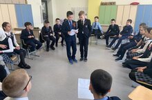 Гимназиядә 6-7 нче сыйныф укучылары өчен патриотик темага багышланган ,,Егет без!" дигән дәрестән тыш чара узды. Укучылар белән очрашуга махсус хәрби операциядә катнашучы, вакытлыча ялга кайткан Билалов Илгизәр Илдус улы чакырулы иде. Чара тантаналы рәвештэ башланып китте: залга юнармиячеләр дәүләт флагларын алып керделәр, дәүләт гимннарын тыңлагач, аләмнәрне залдан алып чыктылар. Чара барышында Илгизәр Илдус улы узе турында, туган илне кадерләү хакында бик матур итеп сөйләде. Укучылар язган хатлар, кулдан ясалган шәмнәр өчен, рәхмәтләрен белдерде. Чара музыкаль номерлар белән аралашып барды. Халыкның :,,Сугышның йөзе юк", - дигән мәкале хакыйкатькә туры килә. Бүген чарада яңгыраган Г.Кутуйның ,,Сагыну " нәсере дә, М.Җәлилнең ,,Ана бәйрәме" шигыре дә, ,,Кичер мине,әни!" бию композициясе дә, ,,Русский лес" жыры да урынлы иде. Кыска гына вакыт аралыгында мәгьнәле әңгәмә, зәвыклы чыгышлар булды. Без сугышның бетүен, әти-әниләрнең илгә исән-имин кайтуын, доньяда тынычлык урнашуын телибез. Илебезне , безне яклап , сугышка киткән солдатларга рәхмәтләребезне белдерәбез.