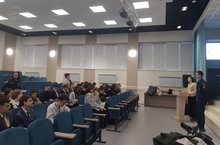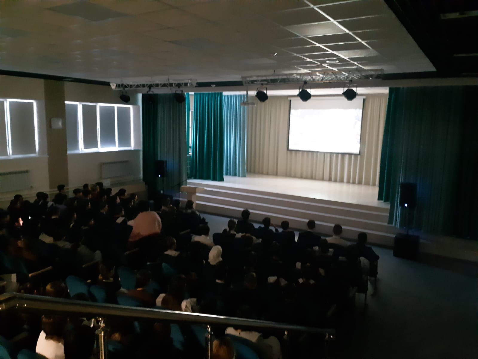 коммуникацияләре баш технологы Черникова Диләрә Ирек кызы килде. Алар 9-11 сыйныф укучыларына үз оешмаларына кагылышлы роликлар тәкъдим иттеләр, укучыларны кызыксындырган сорауларга җавап бирделәр. Караган роликлар буенча викторина оештырылды. Викторинада җиңүчеләр бүләкләр белән бүләкләнде. Очрашуда һәр укучыга куен дәфтәре тапшырылды. -