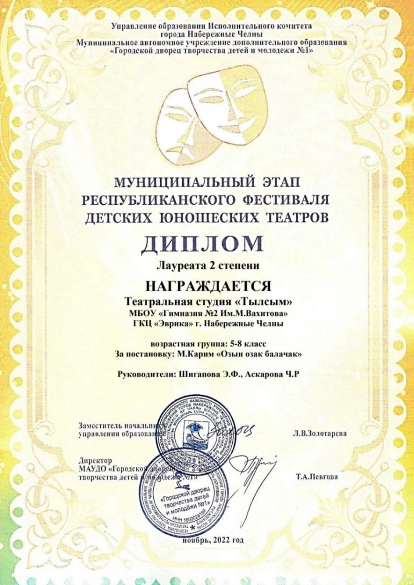 Муниципальное бюджетное общеобразовательное учреждение "Гимназия №2 имени Мулланура Вахитова" города Набережные Челны/Яр Чаллы шәһәренең "Мулланур Вахитов исемендәге 2нче гимназия" муниципаль бюджет гомуми белем бирү учреждениесе