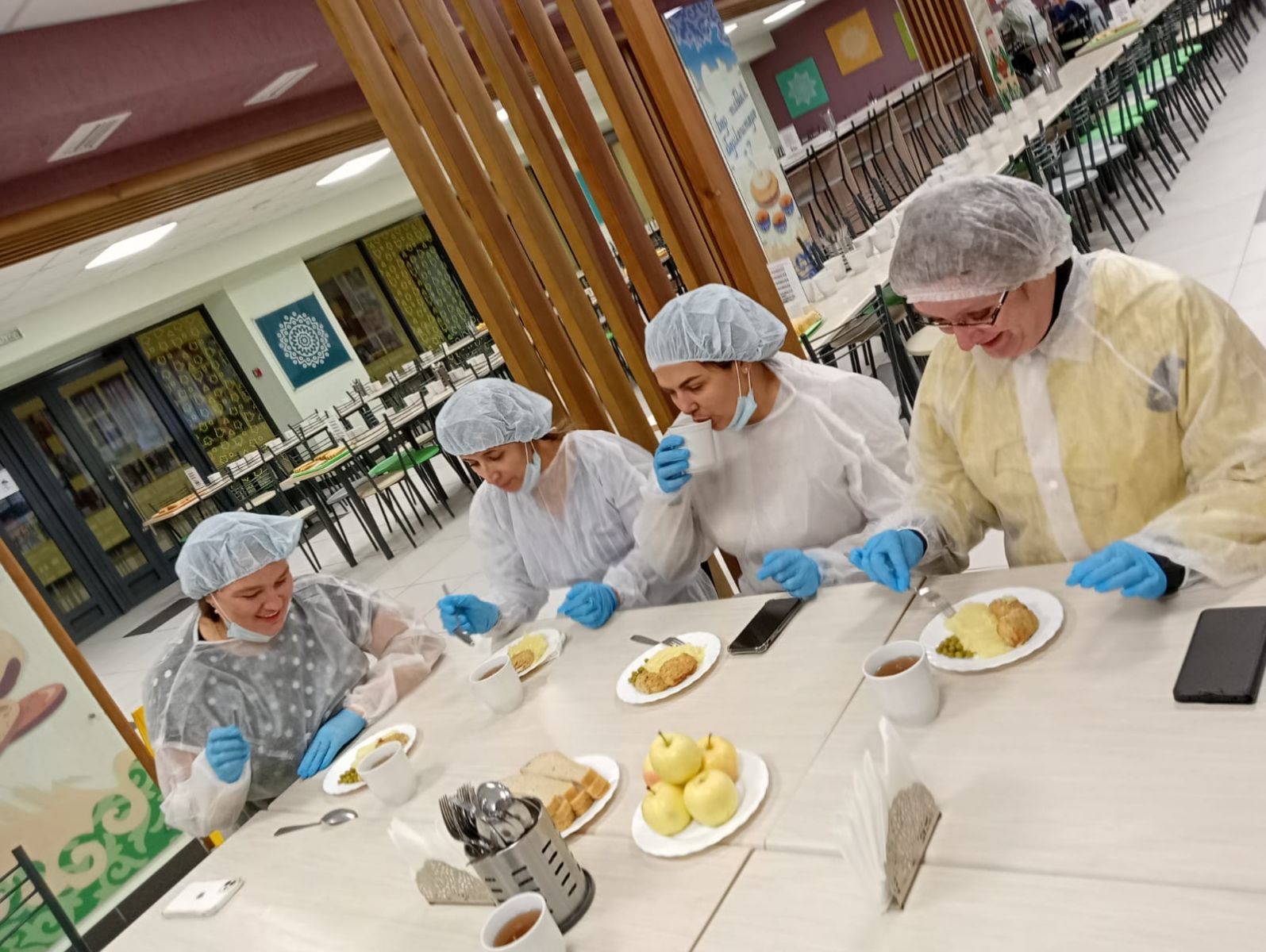 Мулланур Вахитов исемендәге гимназиягә шәһәр әти- әниләре комитеты рәисе Певгова Татьяна Анатольевна килде. Ул гимназия әти – әниләр комитеты рәисе Мухаметова Айсылу Алиевна һәм тагын 2 комитет әгъзасы белән ашханәдәге укучыларның туклану дәрәҗәсен тикшерде. Дежур торучы укучылар белән әңгәмә корды. Укучыларга бирелә торган ризыкларны тәме буенча татып карады. Туклану тиешле дәрәҗәдә оештырылуын, ашханә хезмәткәрләренең эшеннән канәгать булуын әйтте.