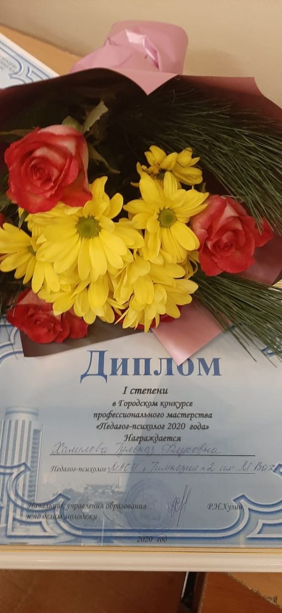 Поздравляем нашего педагога - психолога Халилову Гульназ Флусовну с победой в городском конкурсе профессионального мастерства "Педагог- психолог - 2020"!