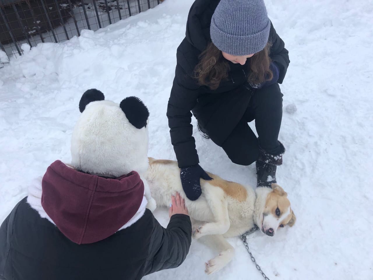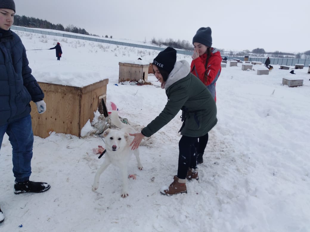 Ял көне булуына да карамастан, 13 укучы әти-әниләре белән бергә этләргә 6 машинага төялеп төрле кирәк-яраклар тутырылган капчык-янчыклар белән “Ирбис” приюты ягына юл тотты. Менә 70 кә якын эт тәрбияләнгән приютка да килеп җиттек. Көне дә укучыларның бу игелекле гамәлләрен хуплагандай җылы, матур. Дүрт аяклы дусларга җылы карашларын, иркәләү - назлауларын кызганмадылар гимназистлар, бәйдән ычкындырып йөртеп тә килделәр, уйнаттылар да.
