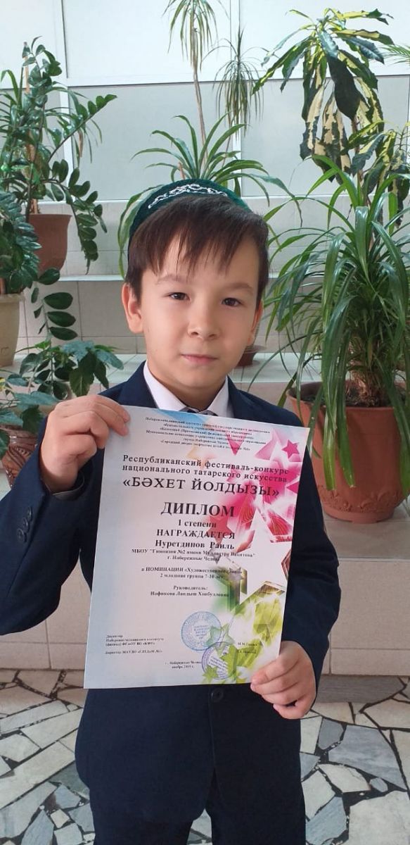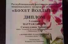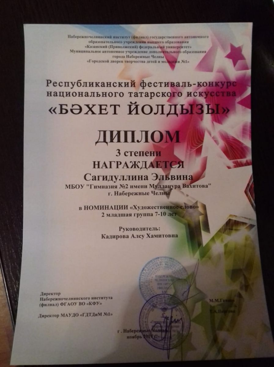 Сагидуллину Элҗвину (Диплом 3 степени), Гафиятову Луизу (Лауреат 3 степени),