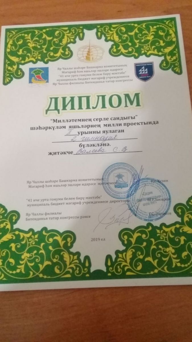 "Милләтемнең серле сандыгы" шәһәркүләм яшьләрнең милли проектында II урын яулаган 2 гимназия командасын котлыйбыз!
