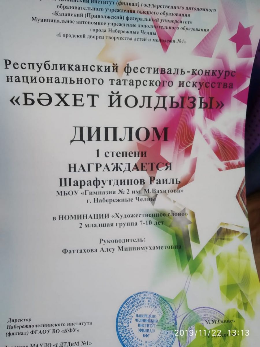 Шайхиеву Рамину (Диплом 2 степени), Галимянову Лейлу(Диплом 2 степени),
