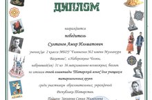 ИЛҺАМ БӨТЕНРОССИЯ ЯШЬ ЯЗУЧЫЛАР БӘЙГЕСЕ ҖИҢҮЧЕСЕ (III ДӘРӘҖӘ ДИПЛОМ) 10Б сыйныф укучысы МУЛЛАГАЛИЕВА ЛИЛИЯНЕ һәм ЛАУРЕАТЫ 5Б сыйныф укучысы ГАЛИЕВ СӘЙДӘШНЕ, татар теле һәм әдәбияты укытучылары Нурисламова Энҗе Әзһәм кызын һәм Вәлиева Суфия Вәсил кызын чын күңелдән котлыйбыз!!! Киләчәктә дә иҗади уңышлар телибез!