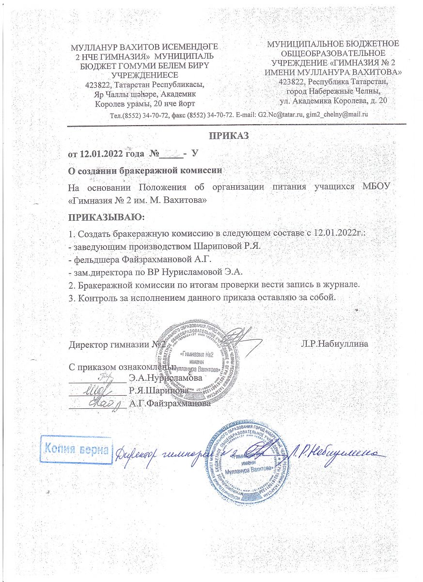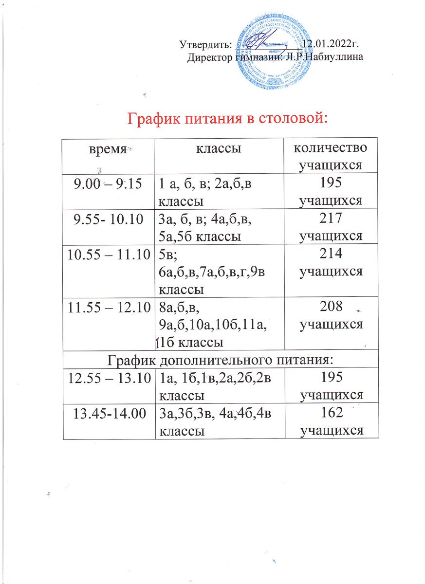 Приказ гимназии от 11.01.2022 №01 "Об изменении стоимости питания обучающихся гимназии на 2022 год"