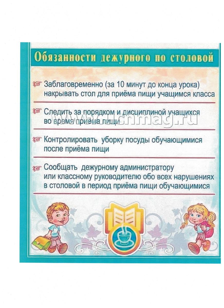 План работы по контролю за организацией и качеством обучающихся в школьной столовой