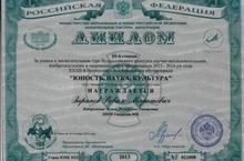 Табанакова Семена с 1 местом в региональной олимпиаде по английскому языку филиала "Нижегородского государственного лингвистического университета им. Н.А. Добролюбова", октябрь 2013 г.