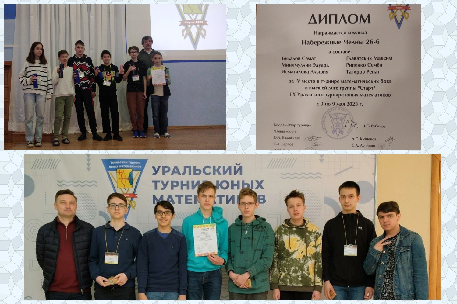 С 3 по 9 мая 2023 г. в городе Кирове состоялся LX Уральский турнир юных математиков. Команда 8б класса заняла 2 место во второй лиге "Сеньоров". Команда 6 класса заняла 4 место в высшей лиге "Старт". Поездка команд на турнир стала возможной при поддержке ООО "Торговый дом Tatarstan". От всей души благодарим за помощь!