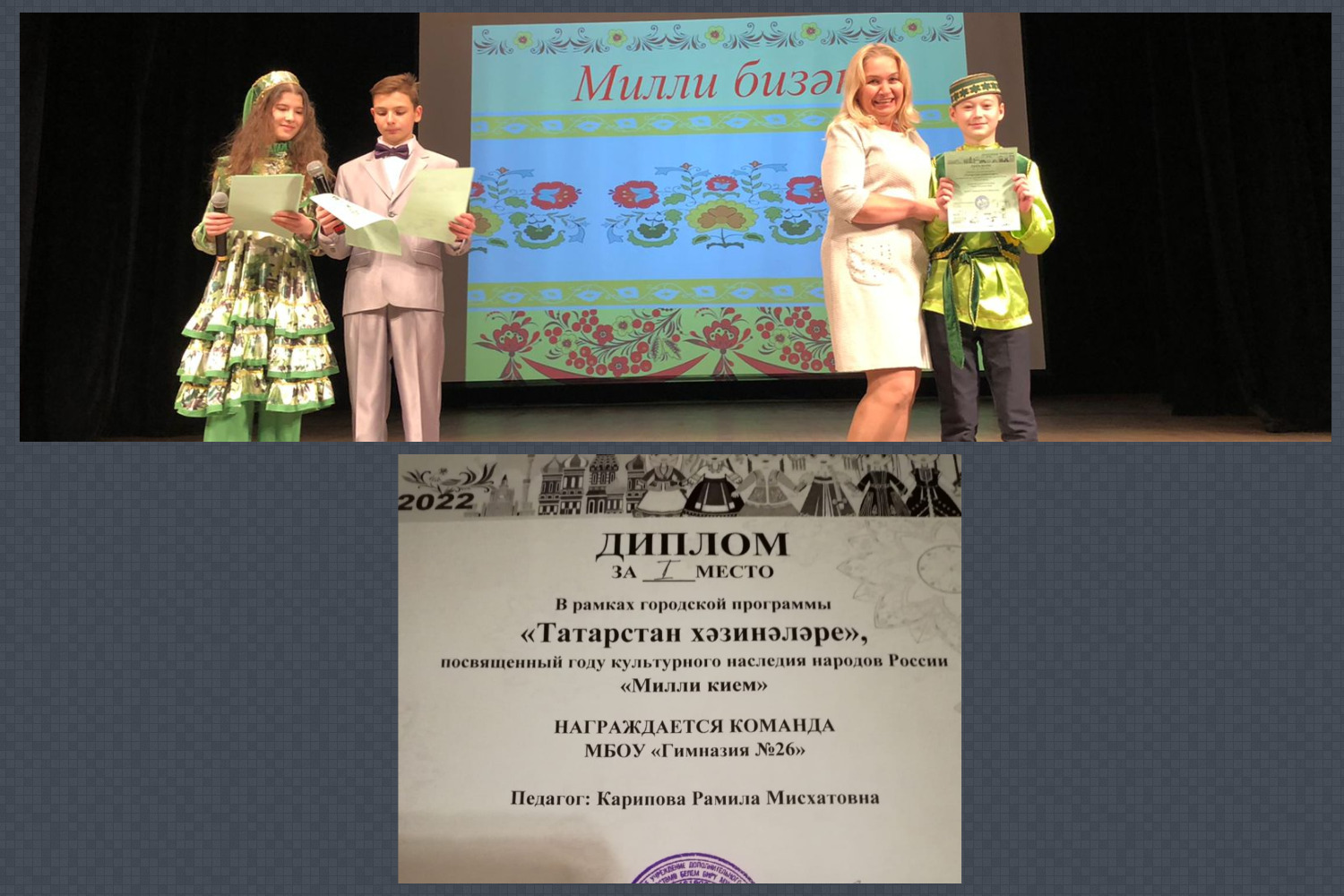 Ученики 5а,5в класса на конкурсе «Сокровища Татарстана» заняли I место. Поздравляем! Желаем новых побед! Руководитель:Карипова Р.М.